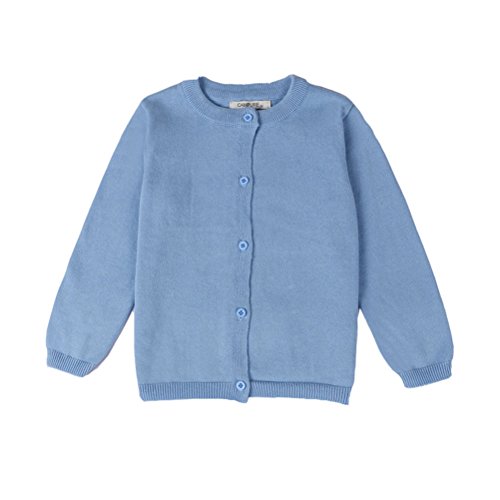 LittleSpring キッズ スクール カーディガン 無地 ブルー 長袖ニット アウター 子供服 女の子 女児 120