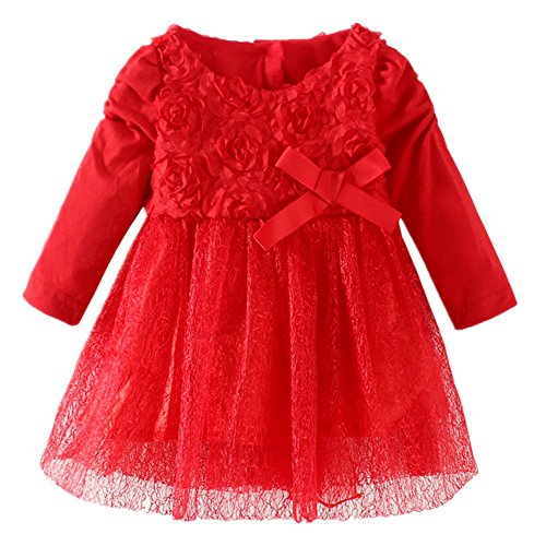 LittleSpring春秋 ベビーガールズ フォーマルウエア お姫様 長袖ドレス 赤ワンピース9M