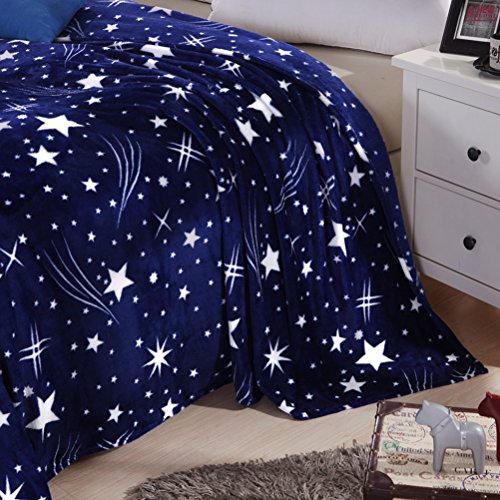 livebycareラグジュアリーコレクションウルトラソフトフランネルベッドBlanket PlushフリースオールシーズンThrow /ベッド毛布ソファ毛布 79*91"(Queen) ブルー LC_JY_falairong-cuicanxingkong-200230