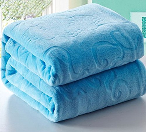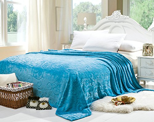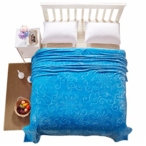 ジャカード花柄フランネルベッド毛布Extraソフト暖かいPlush Easy Care厚み付けふわふわベッド用毛布 39*39 inch ブルー LC_KR_chunsejianhua-tianlanse-100100