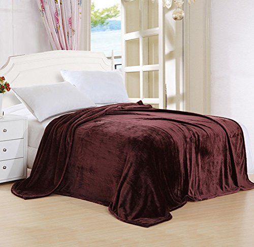 キャンディーカラーフランネルベッドブランケットシートExtraソフト暖かいPlush Easy Care軽量ふわふわベッド用毛布 91*98 inch(King) ブラウン LC_HMJY_JL-07-shenka-230250