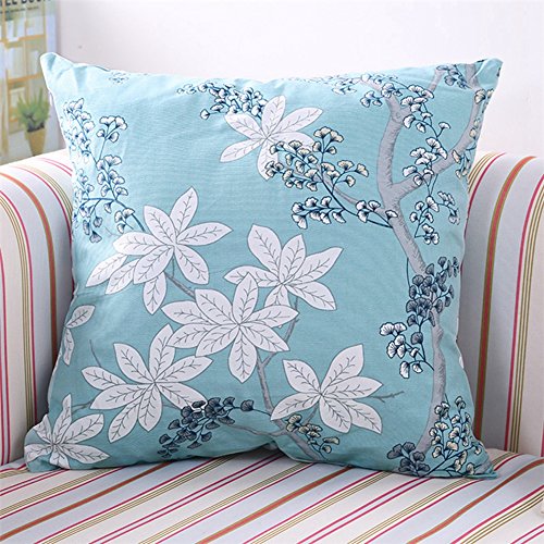 multi-sized両側フローラルプリントクッションカバーlivebycareリネンコットンスローピロパターンジッパーPillowslip枕カバーインテリア装飾用再生勉強部屋 20*20''WITH INSERT ブルー LC_DZ_Flowers-lvdibaiye-5050-S
