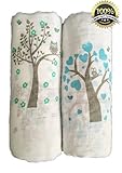 Muslin Swaddle Blankets - 47 inch x 47 inch Large Softest Muslin Swaddles - Half Price for Promotion - Tree Bird and Owl - Unisex for Boys or Girls - Lifetime Guarantee by Seben Baby