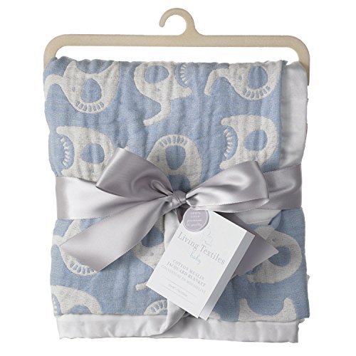 Living Textiles Muslin Jacquard Blanket, Blue Elephant by Living Textiles [並行輸入品]