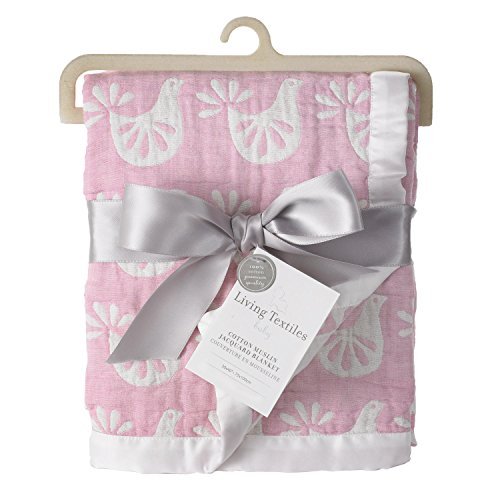 Living Textiles Muslin Jacquard Blanket, Pink Bird by Living Textiles