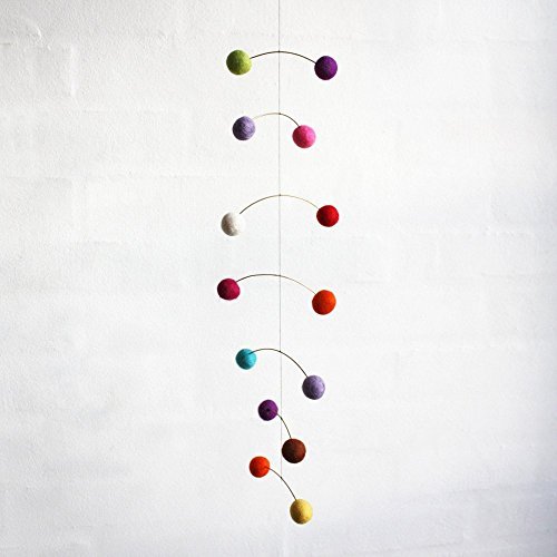 デンマーク王室にも愛される 風に揺られて癒しを運ぶデンマークモビール 独創的なデザインで名をはせるデザイナー クヌードセン夫妻が手がけたモビールの復刻版。窓辺や空調のそばにつるせば、風にふかれて優雅にユラリユラリ…。眺めているだけで癒されます♪ 対になった色とりどりのフェルトボールが風にふかれてくるくると、そしてゆったりと回ります。現代でも色褪せることのない作品をライフスタイルに取り入れてみてはいかがでしょうか?