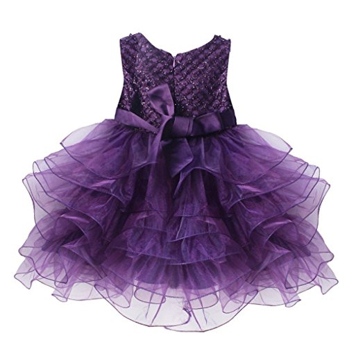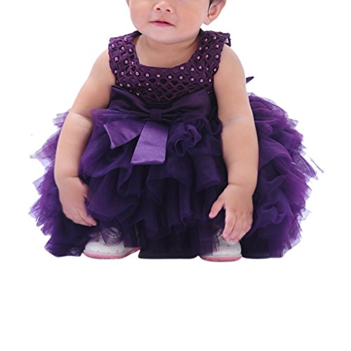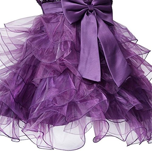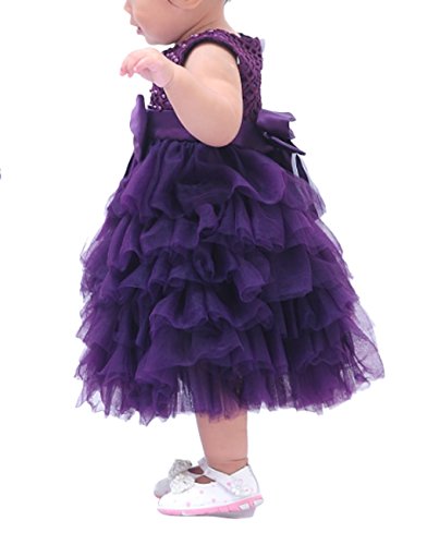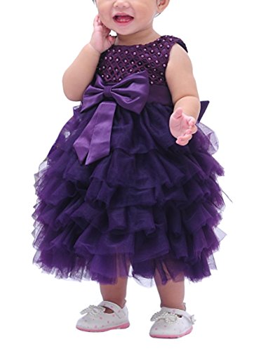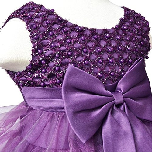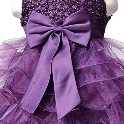 xuguozhu キッズ服 プリンセスドレス 3歳 5歳 女の子 ワンピース 袖なし 韓国スタイル フラワーガール リボン付 シフォン フワフワティアードスカート 可愛い パール飾り ベルト付き 結婚式 入園式 スデージ衣装 2カラー パープル 90cm
