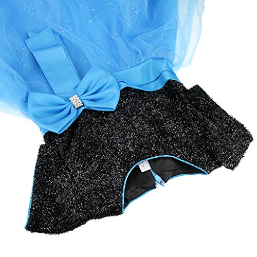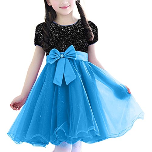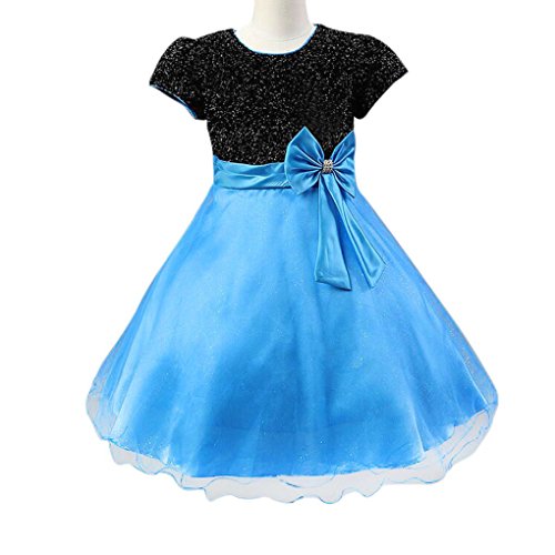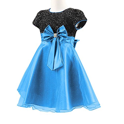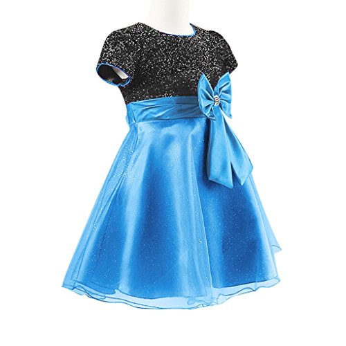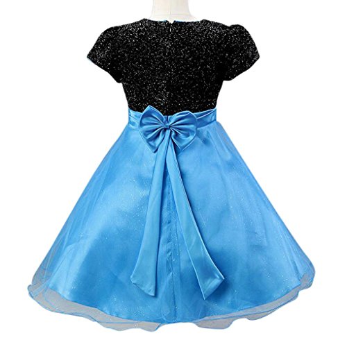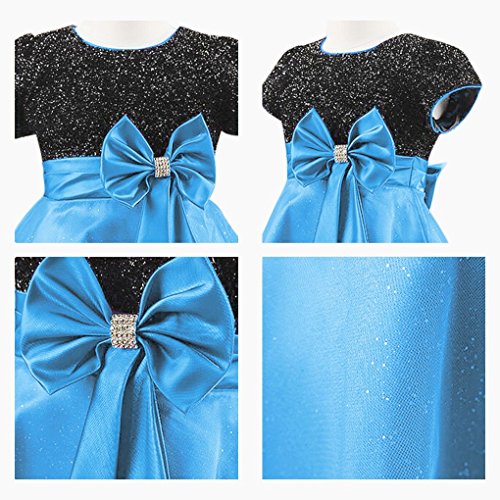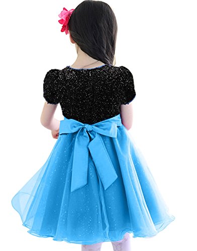 xuguozhu フォーマルワンピース 女の子 ランドネック 半袖 カラー切り替え チュチュドレス 大きいリボン付 2タイプ ダンス 結婚式 コスチューム 可愛い ブルー 120cm