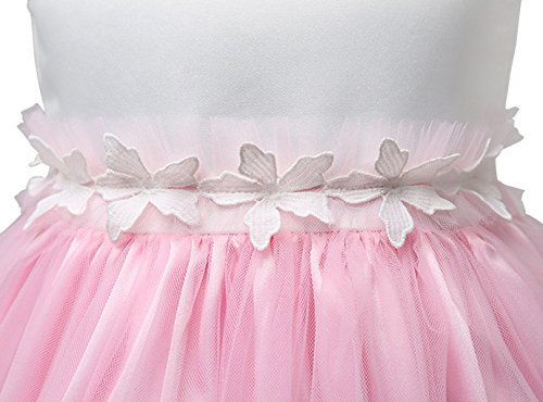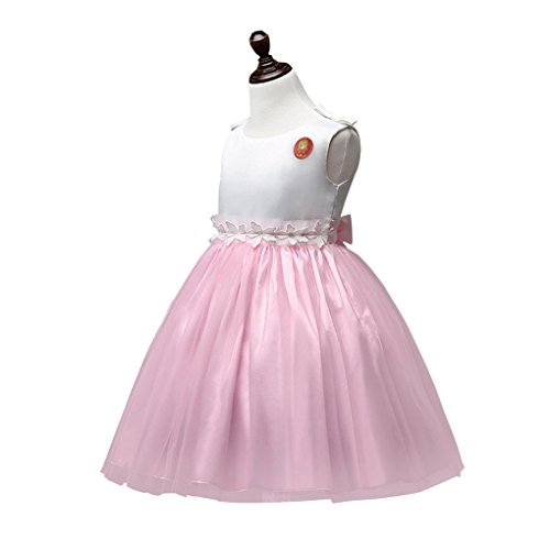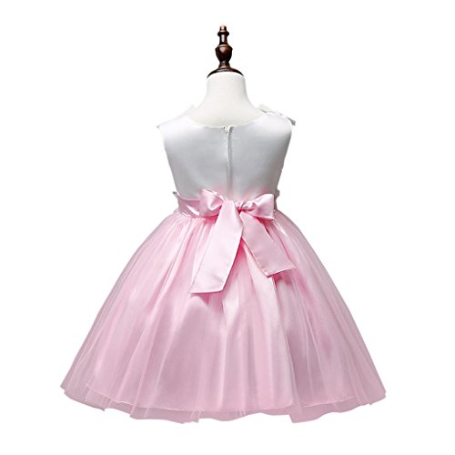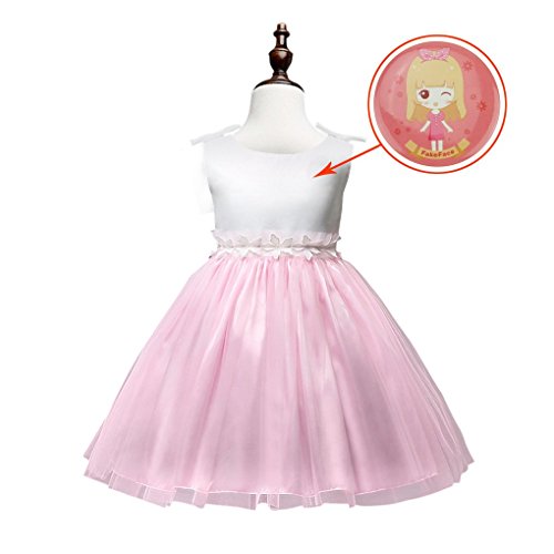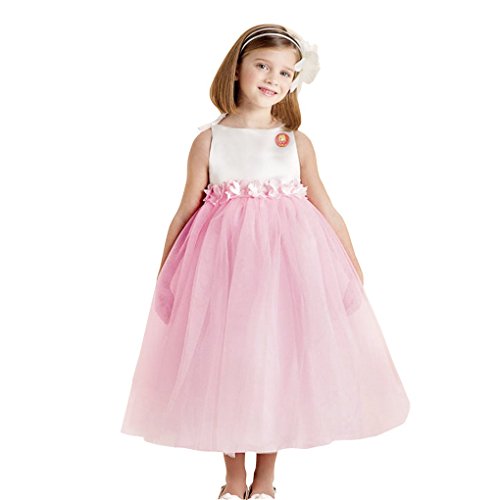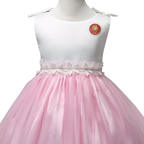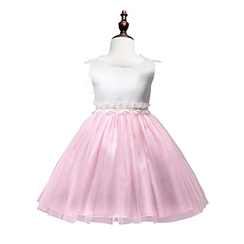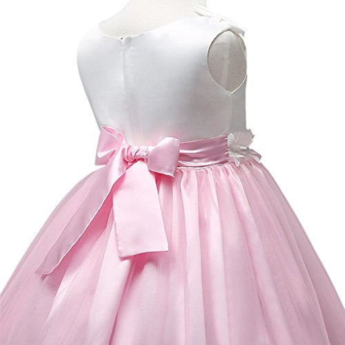 xuguozhu フラワーガール ワンピース ノースリーブ カラー切り替え サテン切り替えチュールスカート ウエスト沿い 花仕様アップリケ リボン付 ベルト付き 華やか 清潔感 ピンク 100cm