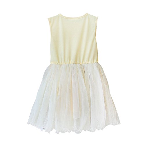 xuguozhu ダンス衣装 ワンピース ジュニア 女の子 ノースリーブ スパコール 切り替え チュールスカート ギャザー 2カラー選べる 演出服 スデージ服装 演奏会 発表会 イエロー 100cm