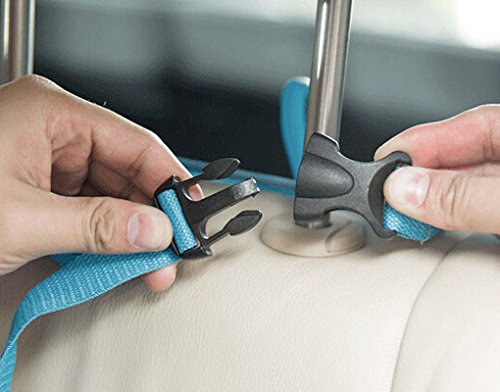 - 2本のヘッドレストストラップで車後部の座席に固定します。ゴム製ではない高耐久材料と、頑丈なバックルを装備しています。取付も簡単で、ドランクスペースもっと有効に活用できます。