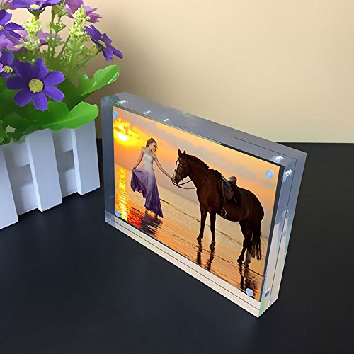 プレミアムアクリルクリアフォトフレーム – Lmeison両面厚デスクトップフレーム、20 % thickerマグネットフォトフレーム、フレームレスデスクトップはがき表示 5×7 inch
