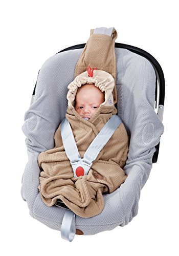 独創的なデザインで注目されているオランダ生まれのロジャー。パパとママの心を惹きつける愛らしい刺繍とコントラスト、そしてやわらかなフリース素材で赤ちゃんを優しく包みます。赤ちゃん時はマットやおくるみとして、大きくなったら肌かけとして、いつまでも使えます。面ファスナーで止めるだけで簡単に包めて、ひもを引くと頭部分がフードに。