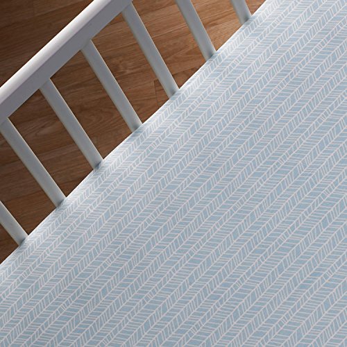 - Lolli Living Fitted Sheet - Aqua Herringbone - 100% Cotton Sheet, Fully Elasticized With Extra Deep Corners For Secure Fit, Gentle On Baby Skin.