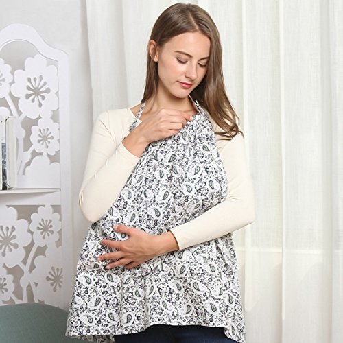 Lorcoo 授乳ケープ 大きめサイズ 検査済み上質コットン100% めくれ防止、360℃安心の調節ヒモ 多機能 ワイヤー入り