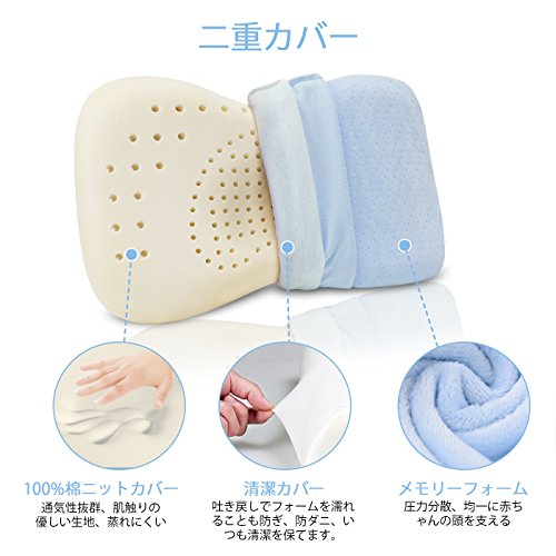 - 【安全基準】国際SGS合格認証取得。ホルムアルデヒドなどの危害物質を含まない安全・安心な素材です。赤ちゃんの発育と安全を第一に考えて研究発明しました。(※未検査商品が多く販売されています。ご注意ください。)【専用設計】航空宇宙科学に基づいた新開発衝撃吸収高品質記憶ウレタンフォームを使用し防振、吸音、体をメモリーに優れてノイズがない夜はベビーが良く寝てママも安心、中央の丸いくぼみが赤ちゃんの柔らかな頭を優しく包みフィットした支えます。中央に配置した通気穴はたっぷりの空気を通して汗が多い場合もさっと吸収し通気性保つため、1年を通して快適にご使用いただけます。