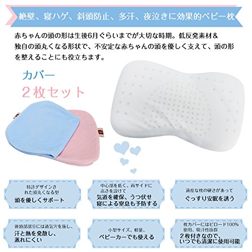 LoveHome ベビー枕 100% 綿カバー 2枚セット付き 抗菌防ダニ 国際SGS認証合格取得 向き癖防止枕 絶壁頭 斜頭 変形 猫背 寝姿を矯正 頭の形が良くなる 寝ハゲ対策 安眠 汗とり 通気 清潔 低反発ピロー 赤ちゃん まくら【メーカー直営・1年保証付】