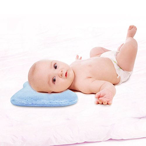 LoveHomeベビー枕 絶壁 向き癖 斜頭 防止 100%無添加 国際SGS認証取得 丸頭 まくら 低反発 赤ちゃん 新生児 枕 カバー 洗える 通気性(青い)