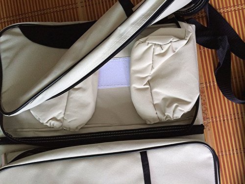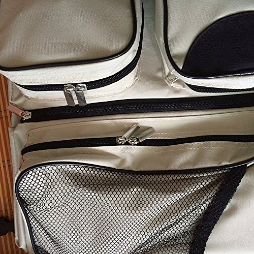 - 哺乳瓶とか魔法瓶、ミルクケース、水、着替え、おしりふき、オムツなどゴム付きポケットに分けて収納できる。