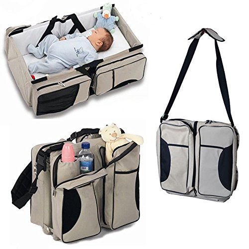 Lovelybaby多機能 大容量 高機能 防水 マミバッグ ママバッグ 折りたたみ式 ベビーベッド 旅行 便利 おむつ換えシート ショルダーバッグ (ベージュ黄色)