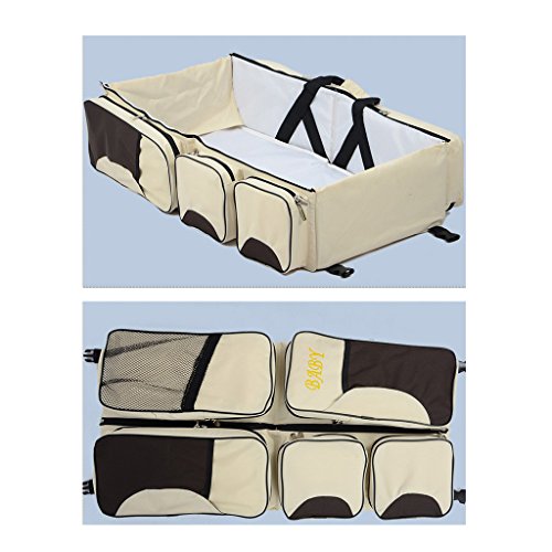 Lovoski 携帯 折り畳み式 赤ちゃん 旅行 保育園 ベビーベッド ベビーカー ベビーバシネット ベビーバッグ 全4色 - ベージュ