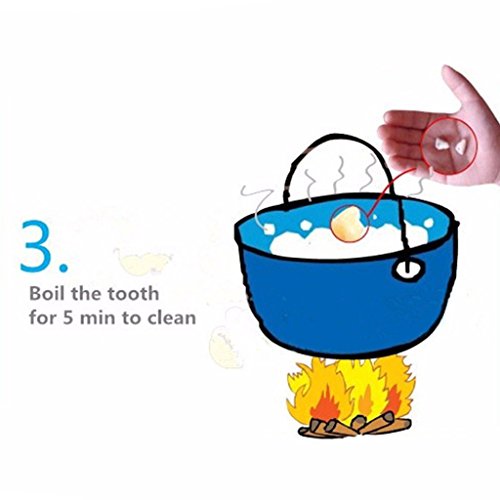 注意:赤ちゃんの歯が落ちたら、煮沸した水に歯を約5分間滅菌しておいてください。