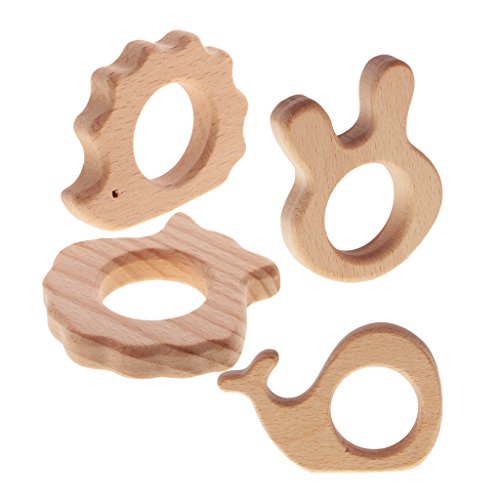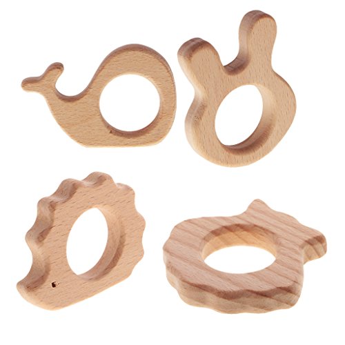 Lovoski 4個セット ティースリング おしゃぶり ウッ製 動物形状 形状勉強