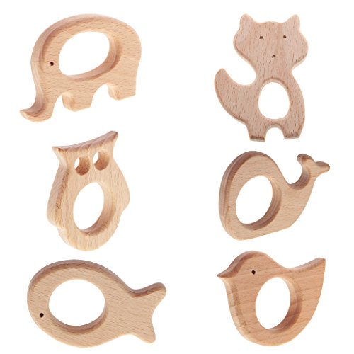 Lovoski 動物形状 可愛い おしゃぶり ティースリング ウッド つかみ鍛え DIY 6個セット