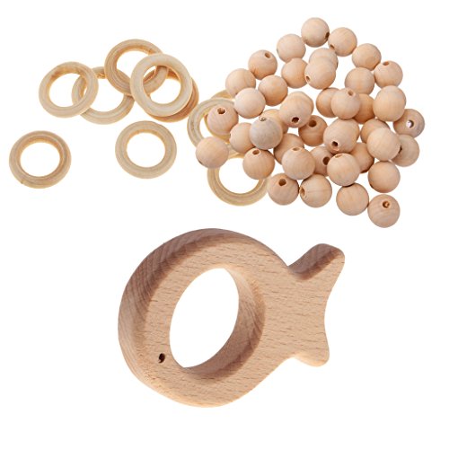 Lovoski ビーズ おしゃぶりおもちゃ ティースリング 手作りパーツ 木製 約61個