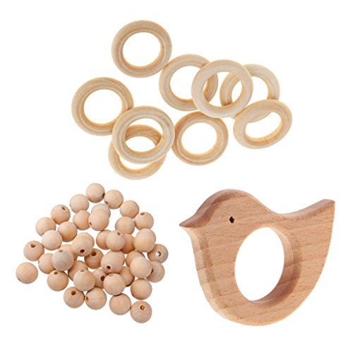 - 10個の未完成の木製の丸いリングDIY工芸品のベビーテザーリング2.5センチメートル