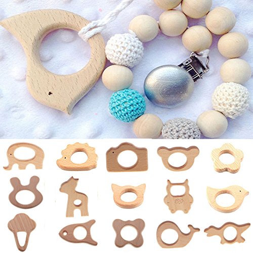 - おもちゃやおしゃぶりとして遊ぶのに安全で、赤ちゃんにとっても無毒な環境にやさしいブナの木材、授乳用ネックレスなどのためのティーバッグペンダント