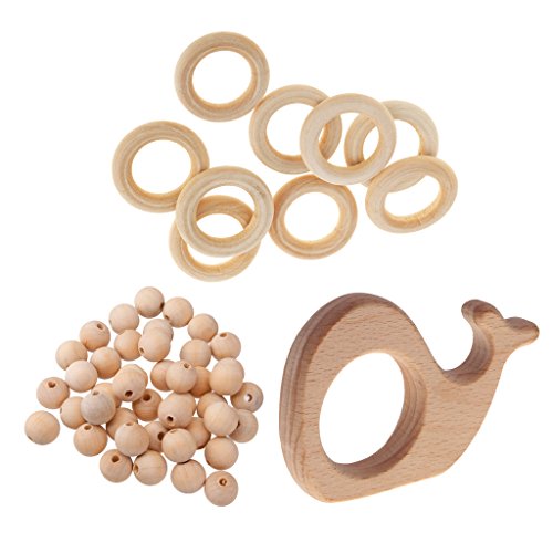 - 1ピースクジラの形の赤ちゃんのおもちゃのおもちゃと10個のピース2.5cmの歯のリング、50個の10mmの木のビーズ