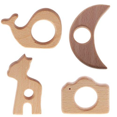 Lovoski 4個セット 木製 異なる形状 ティースリング 赤ちゃん 歯おもちゃ