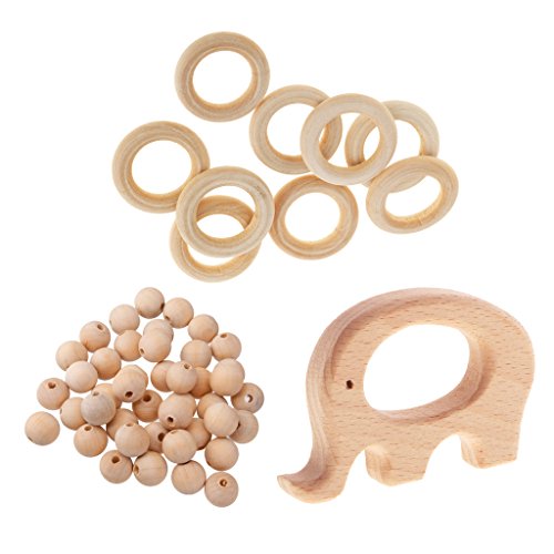 - 1ピースの象の形の赤ちゃんおしゃぶりのおもちゃと10個のピース2.5cmの歯のリング、50個の10mmの木のビーズ