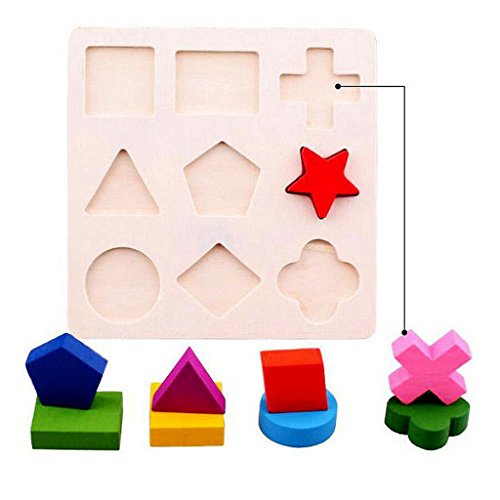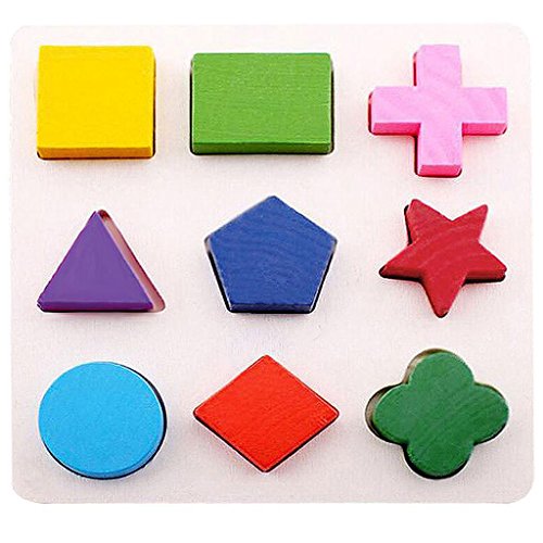 - これは、若い子供たちが分数、色や形状認識の概念を学ぶことのための木製の形状のパズルです。