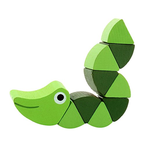 Lovoski 安全 木製 赤ちゃん 子供 かわいい 興味を開発 おもちゃ ワニと虫 2パタン選べ - 緑