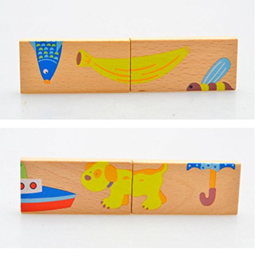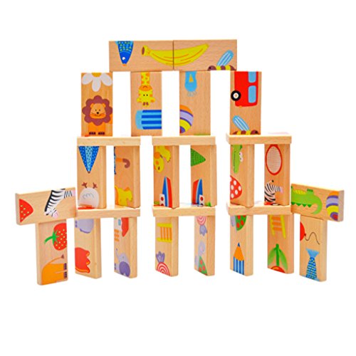 Lovoski 動物の柄 子供 木製 積み木 ドミノゲーム ブロック はめこみ 知育玩具 ギフト