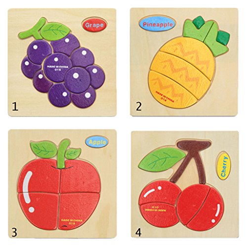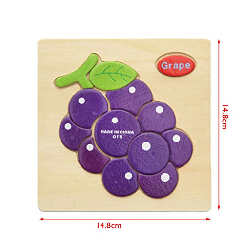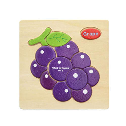 Lovoski 木製 漫画の形 動物 果物 パズル 子供 赤ちゃん 知育玩具 ギフト 全9パタン選べ - ブドウ