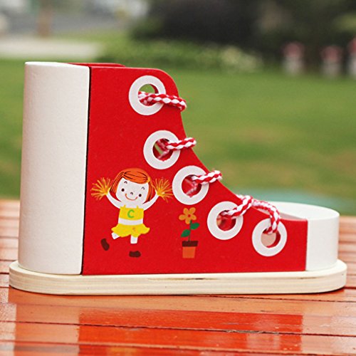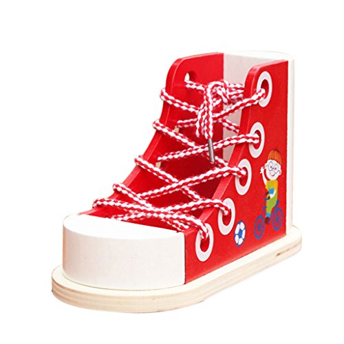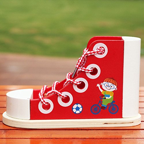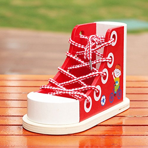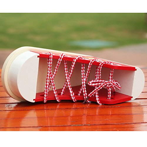 Lovoski 木製 靴 ネクタイ 靴ひも 学習 子供 教育玩具 実用 礼物 レッド