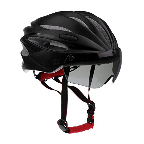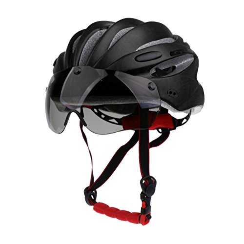 Lovoski MTBバイク ロードバイク オートバイ 安全ヘルメット バイザー付き 4色選べる - ブラック