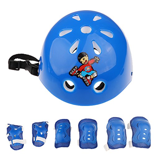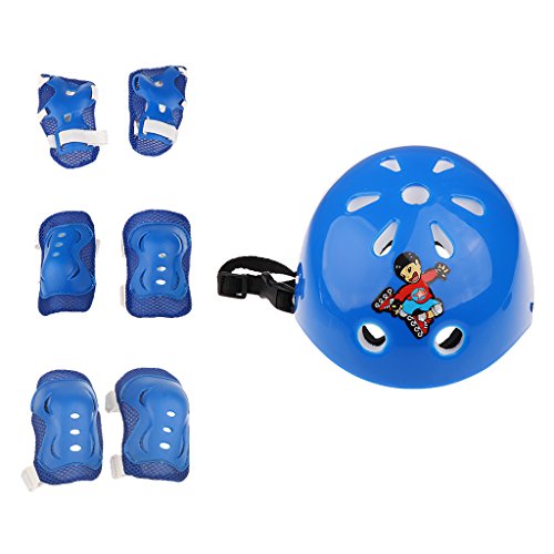 Lovoski 子供 キッズ 自転車 ローラースケート ヘルメット 手首ガード 膝パッド エルボーパッド 安全保護 1セット 全4色 - ブルー