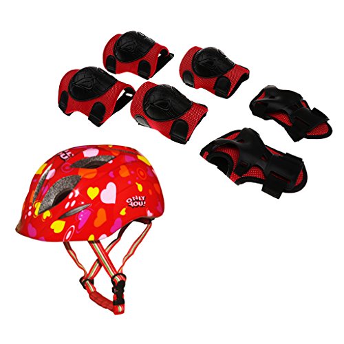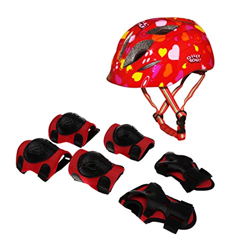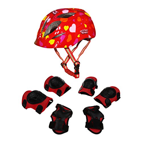 Lovoski バイクヘルメット ローラースケート ひざ/肘パッド付き キッズサイズ リストガードセット レッド