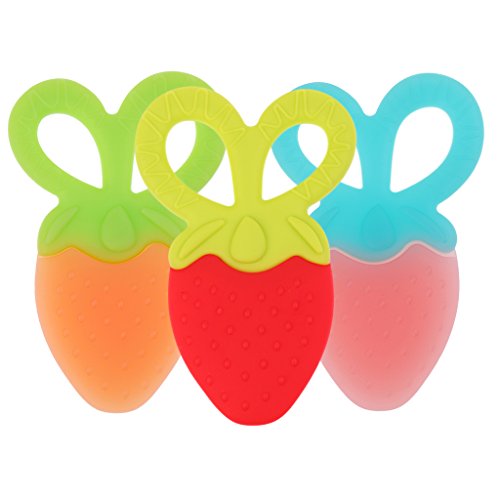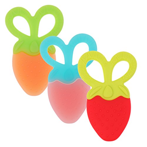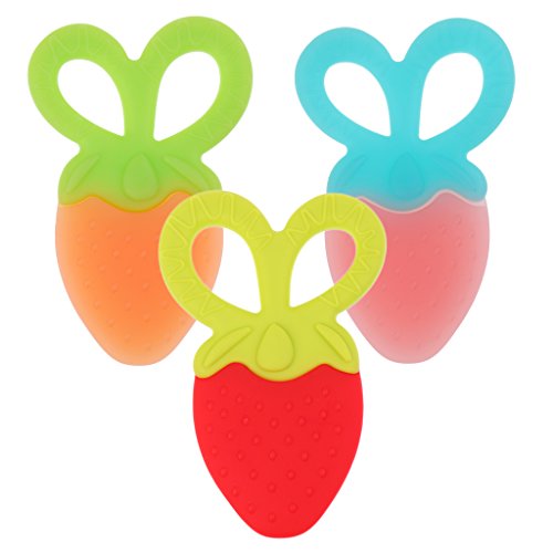 Lovoski 可愛い 新生児 ベビー ソフト シリコン 歯がため おしゃぶり おもちゃ 全2パタン3色 - オレンジ, イチゴ