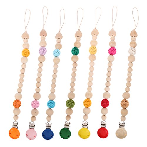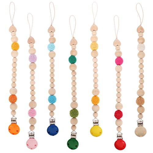 Lovoski 7点 赤ちゃん ベビー 綺麗 木製 ビーズ 歯がため おしゃぶり チェーン 飾り物