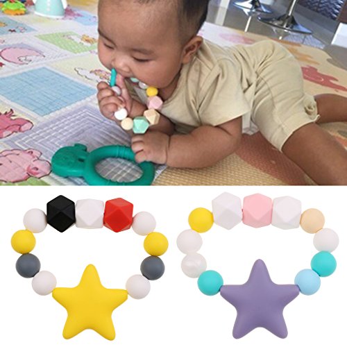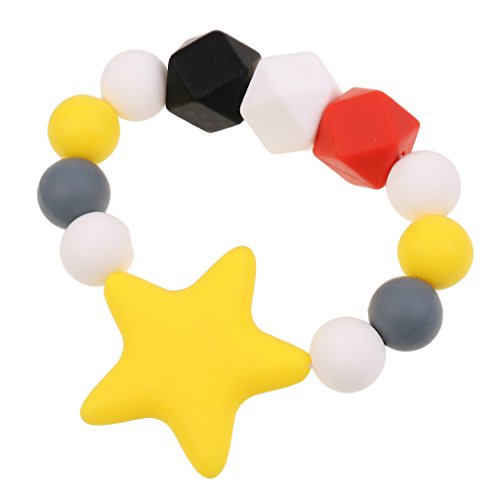 Lovoski 1枚 ベビー シリコーン 噛む ブレスレット おしゃれなビーズ おしゃぶり 歯ブラシチェーン 全2色 - 黄