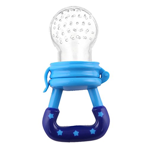 赤ちゃんが食べ物を楽しむためにシリコーンストレーナネットを吸うためにハンドルを保持します。