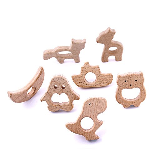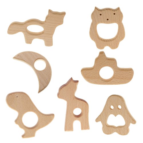 Lovoski ティースリング 歯おもちゃ ウッド 幼児 動物形 可愛い つかむ練習 形状認識 7個入り