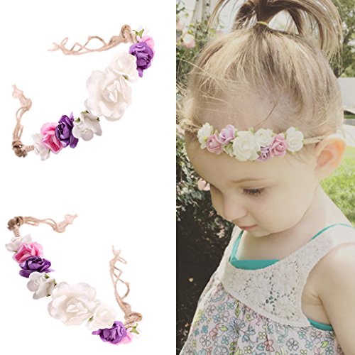 Lovoski 2本 赤ちゃん キッズ 女の子 フラワー ヘッドバンド クラウン 髪飾り ヘアアクセサリー