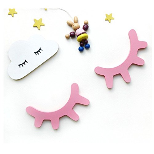 Lovoski かわいい 木 目まつげ 閉じられた 3D 壁のデカール DIY アート 工芸品 ステッカー 全4色 - ピンク