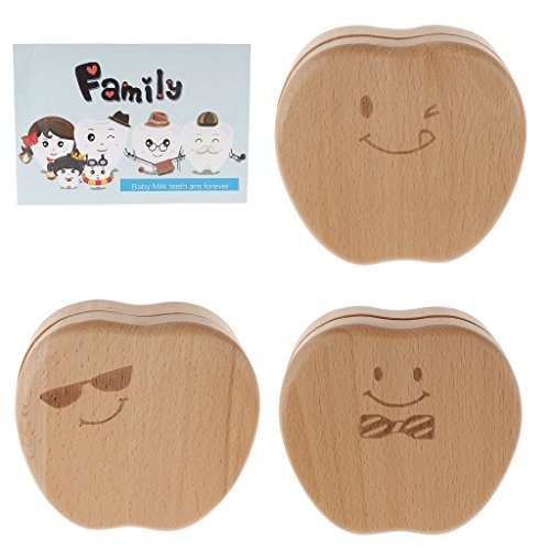 Lovoski 収納ボックス 箱 好意 アップルスタイル カール 歯 ミルク歯 木 赤ちゃん 少年少女 全3種 - 1